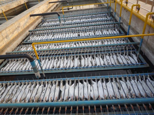 污水處理設(shè)備中常見(jiàn)的種膜技術(shù)是連續(xù)膜過(guò)濾技術(shù),它的核心是有較強(qiáng)抗污染功能的薄膜和與之相配合的膜清洗技術(shù)結(jié)合。它可以做到對(duì)膜不停的在線清洗,從而做到不間斷的連續(xù)處理污水。大型城市污水處理廠中二沉池生水的深度處理常常會(huì)運(yùn)用到這種膜技術(shù)。